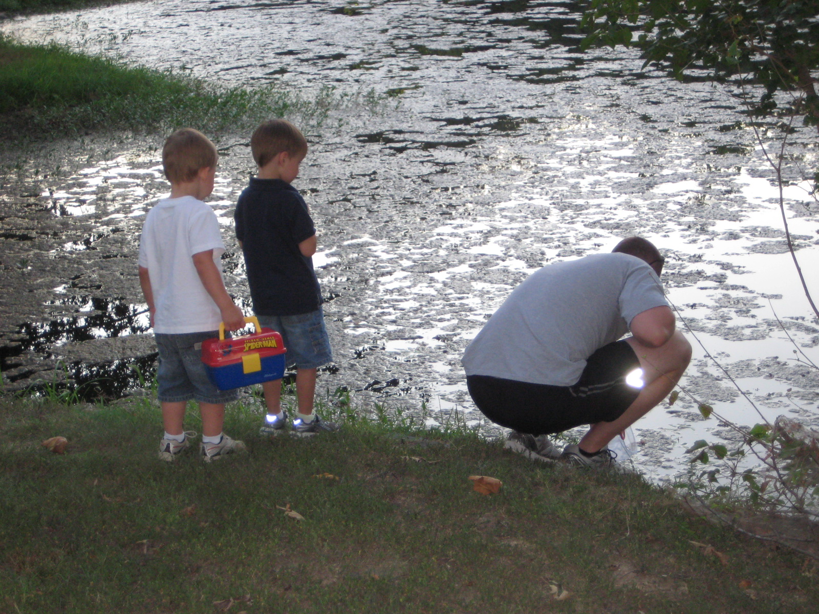 Keagan guarding the tackle box. I threathened both of them within an inch of their lives NOT to open that box without Mommy or Daddy. There were probably 8 hooks in there and all I could see was a trip to the ER with something sticking out of an eyeball.